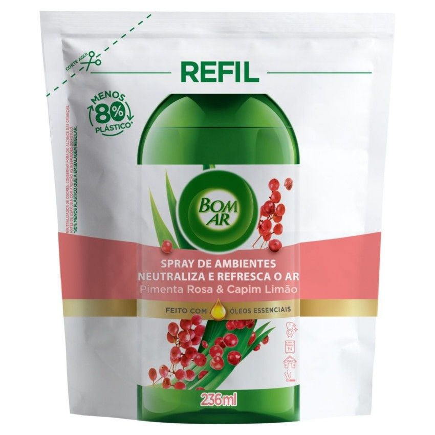 Início › Limpeza › Desodorizadores e Aromatizantes › BOM AR AMBIENTES REFIL PIMENTA-ROSA & CAPIM-LIMÃO 236ML (12256)