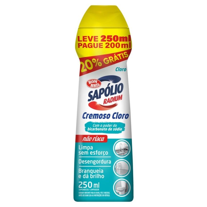 Início › Limpeza › Limpadores › Saponáceos › SAPOLIO RADIUM LIQUIDO CLORO LEVE 250ML PAGUE 200ML, CX C/12 (14072-12)