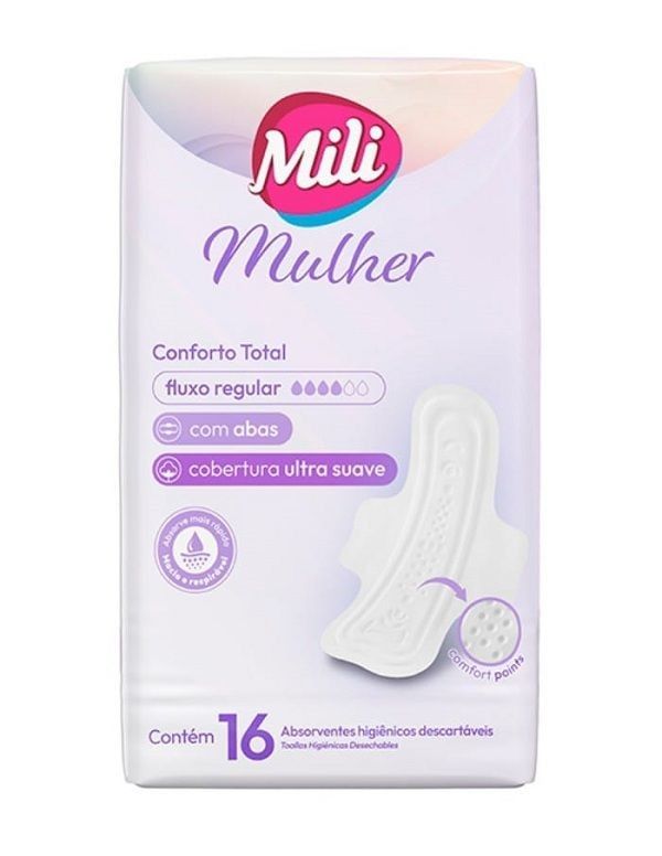 Início › Higiene e Beleza › Cuidado Pessoal › Íntima › ABSORVENTE MILI MULHER CONFORTO TOTAL C/16, KIT 3 PT (15559-3)