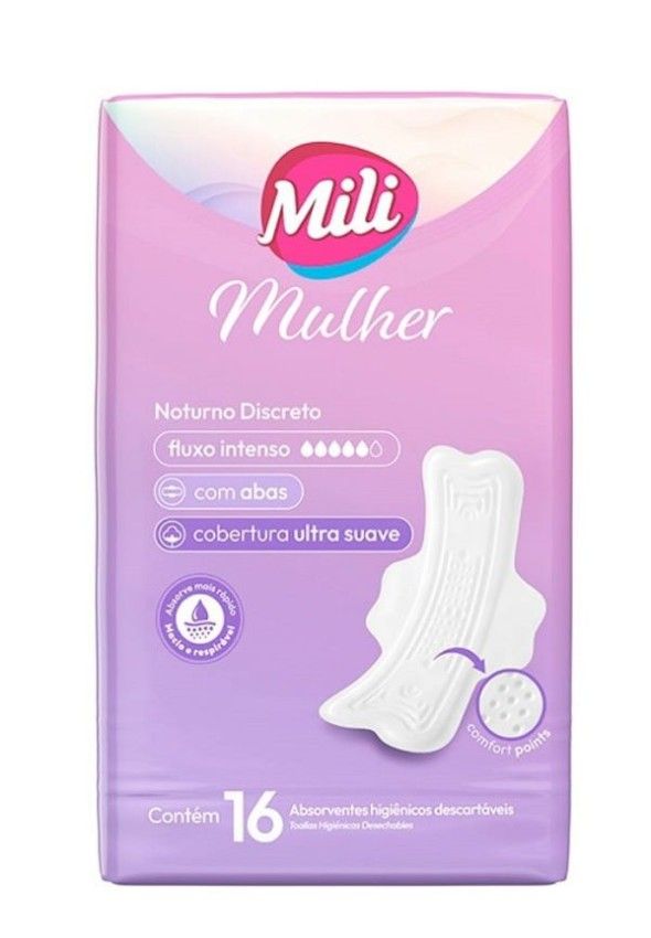 Início › Higiene e Beleza › Cuidado Pessoal › Íntima › ABSORVENTE MILI MULHER NOTURNO DISCRETO C/16, KIT 3 PT (15560-3)
