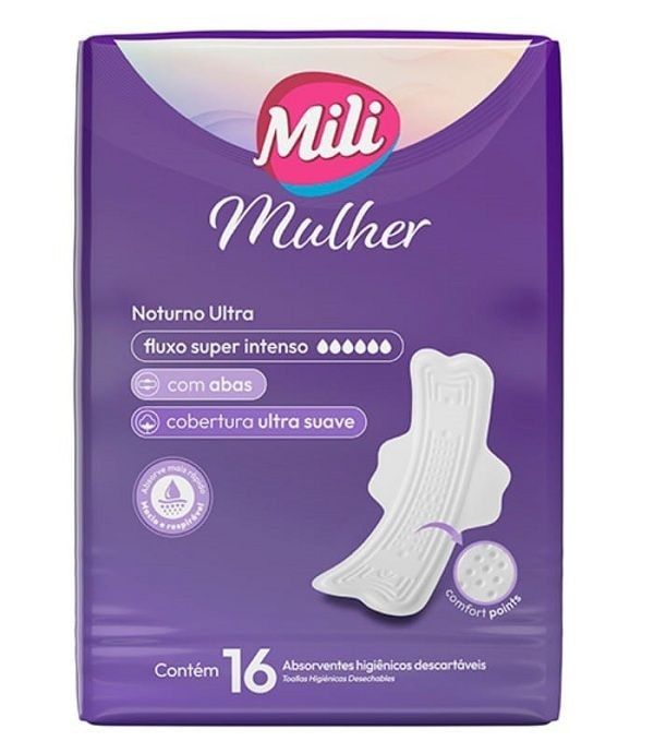 Início › Higiene e Beleza › Cuidado Pessoal › Íntima › ABSORVENTE MILI MULHER NOTURNO ULTRA C/16, KIT 3 PT (15561-3)