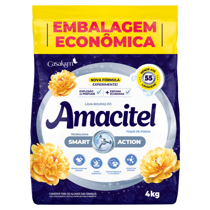 Início › Limpeza › Roupas › Lava Roupas › DET PÓ AMACITEL TOQUE POESIA SACHE 4KG, CX C/4 (15766-4)