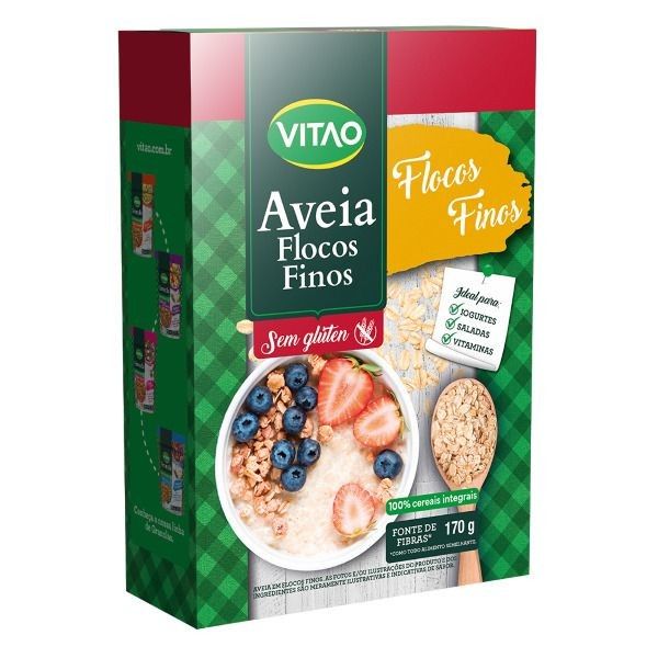 Início › Alimentos › Matinais › Aveias Cereais › AVEIA EM FLOCOS FINOS SEM GLÚTEN VITAO 170GR, KIT 3 UN (7573-3)